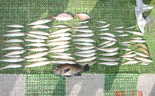 クーラーを覗くと 30cmほどの真鯛が何匹か入っていましたよ