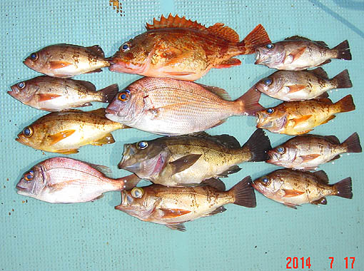 2014 7/17 鯵ケ沢沖 漁船釣り ベタ凪 水温23.5度