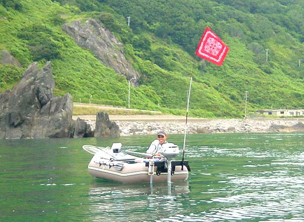 菊池さん 果たして船外機を操る事が出来るのか